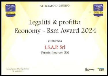 La nostra azienda si distingue per eccellenza, affidabilità e integrità, come dimostra il Premio Profitto e Legalità 2024 , ricevuto presso il Senato della Repubblica Italiana.